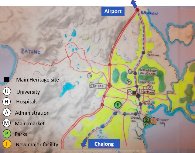 The study has proposed, among other, to strenghten the tram project with a cable-car serving the western side of the island (Patong). The first financial analysis show that such network can be viable, and will be unique opportunity to enhance the heritage and provide a complete urban renewal ti Phuket.