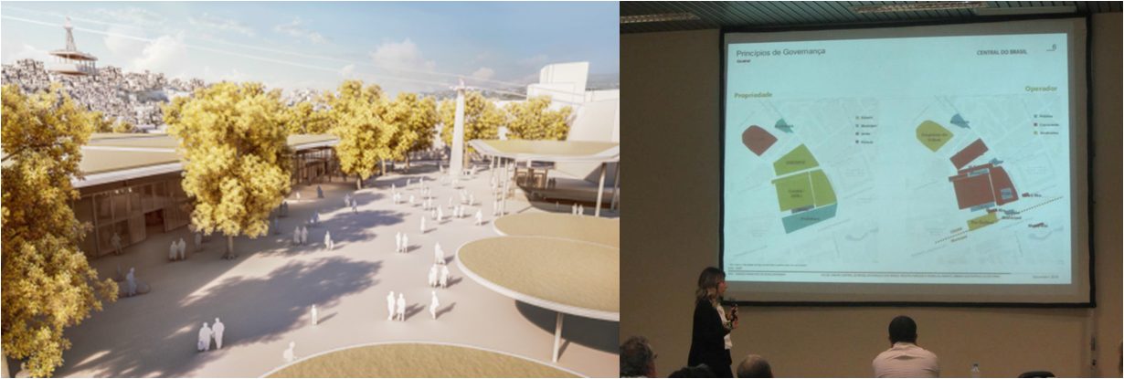 Perspective du quartier de la Central do Brasil (gauche) et présentation du Plan d’Action (droite)