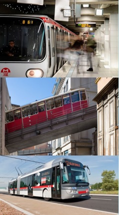 network is reknown for its efficiency, its excellent integration and its diversity of modes, each mode being chosen according to the expected ridership on the mobility corridor. In Total, Lyon has four underground metro lines, five at-grade tram lines, two cable car lines, nine trolley bus lines (electric buses which draws power from over-head wires) and 118 bus lines operated with around 1000 buses.