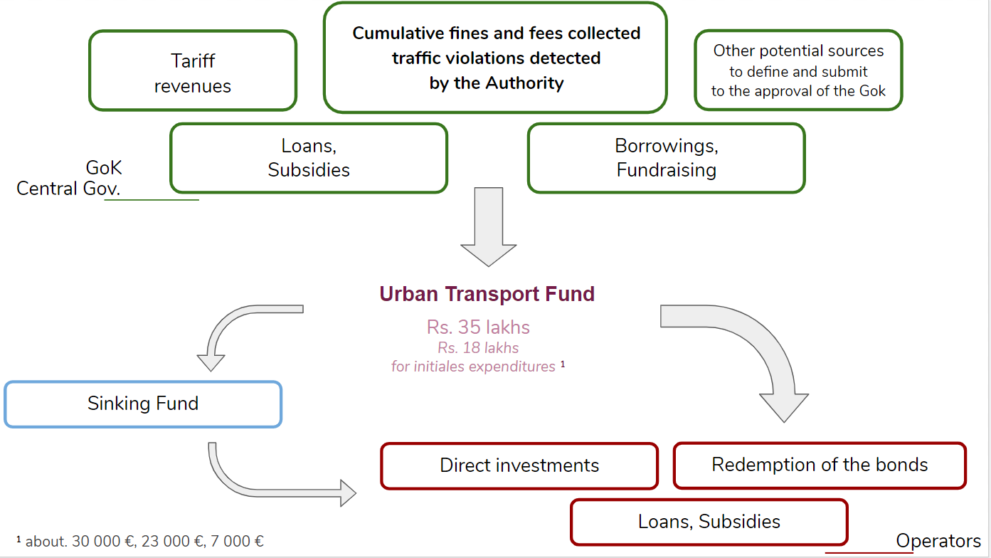 The autonomy of each UMTA (Kochi, Kozhikode and Trivandrum) will also be strengthened by the establishment of a fund specific to each one: the Urban Transport Fund (UTF). The initial versions of the text have been criticized as being too rigid with respect to the definition of this fund and the nature of the sources of funding. Finally, the UTF should operate as follows.