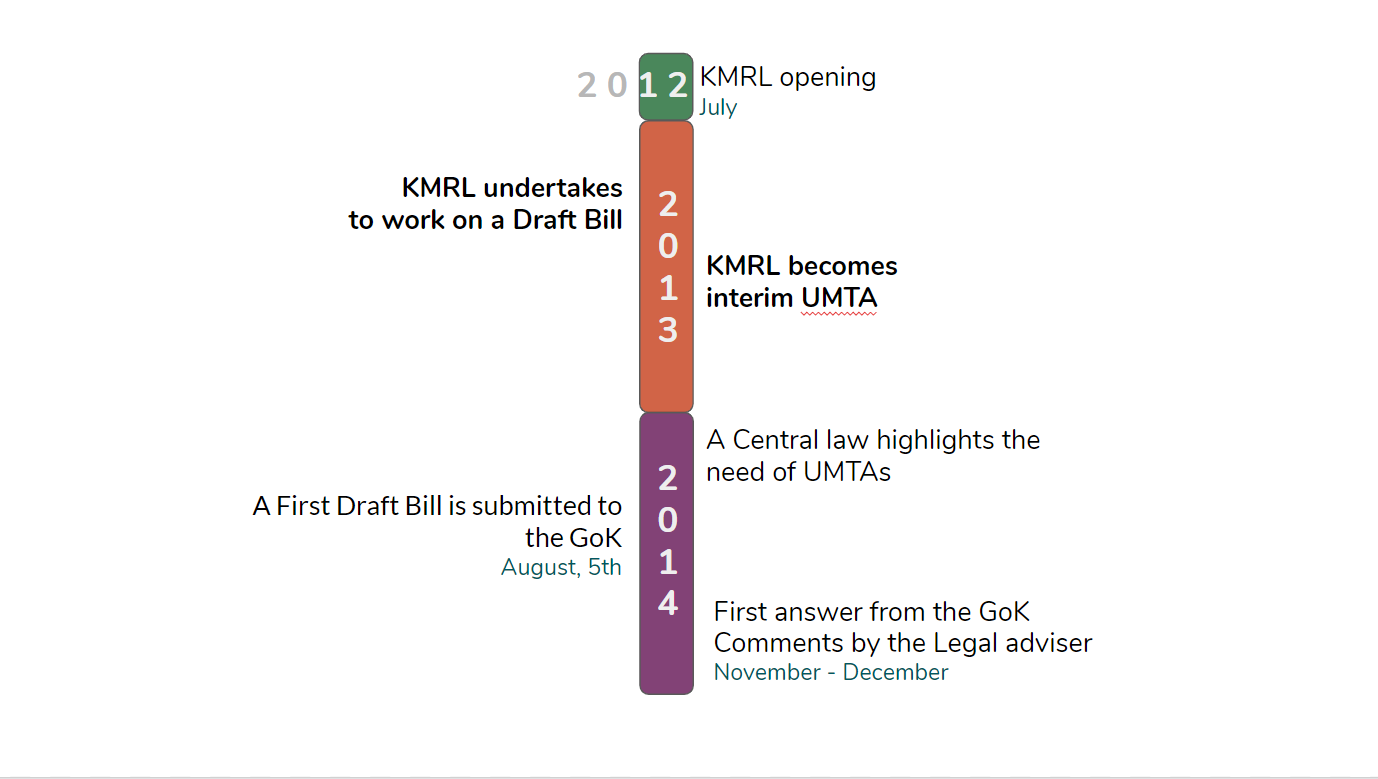 After five years of drafting the law, the creation of an UMTA for Kochi and the two other urban areas of Kerala is thus about to be implemented. If the definition of the content of the law has been slowed down by the relative mistrust expressed by the Government of Kerala, this long time has enabled the construction of a law whose relevance and comprehensiveness have been praised by the Director General of the World Resources Institutes (WRI).