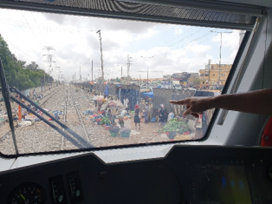 Luanda’s train represent a quality infrastructure, but it is underused because of the presence of pedestrians and street vendors on the tracks (see photo), and garbage that prevents the train from running on the second track. Therefore, the train only operates on one track, with a low commercial speed and very low frequency.