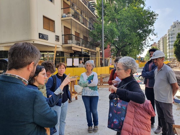 The “Public Space and Urban Hygiene” Department of the city of Buenos Aires produced a green plan in 2020 which notably plans to achieve an area of 3m2 of green space per inhabitant. 33 out of the 48 neighborhoods in Buenos Aires currently have a lower level. This general objective is concretely put into practice within the development program called “ Calles verdes ” (green streets). These projects implemented in the 48 neighborhoods of Buenos Aires consist of the development of sections of streets to incorporate vegetation, reduce the number of parking spaces and facilitate travel by active modes (walking, cycling). The delegation present during the mission in Buenos Aires visited the sites of several projects of this program, including one of the most emblematic, that of Honorio Pueyrredon Street in the Caballito district.