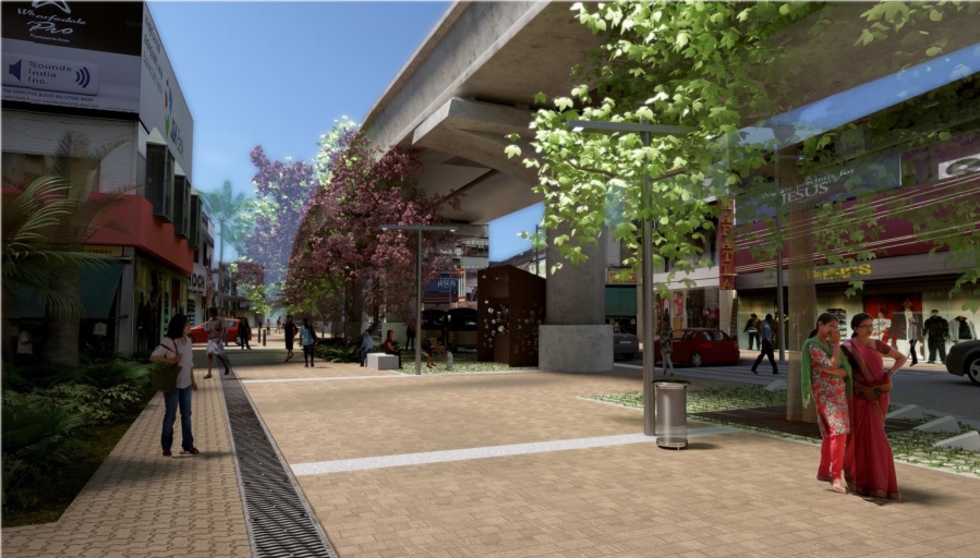 2- Restructuration d’une des intersections les plus importantes du Kerala (Edappally) desservie par le métro, en y permettant la traversée des piétons et cyclistes, prévoyant l’intermodalité, et améliorant la qualité de l’espace public.