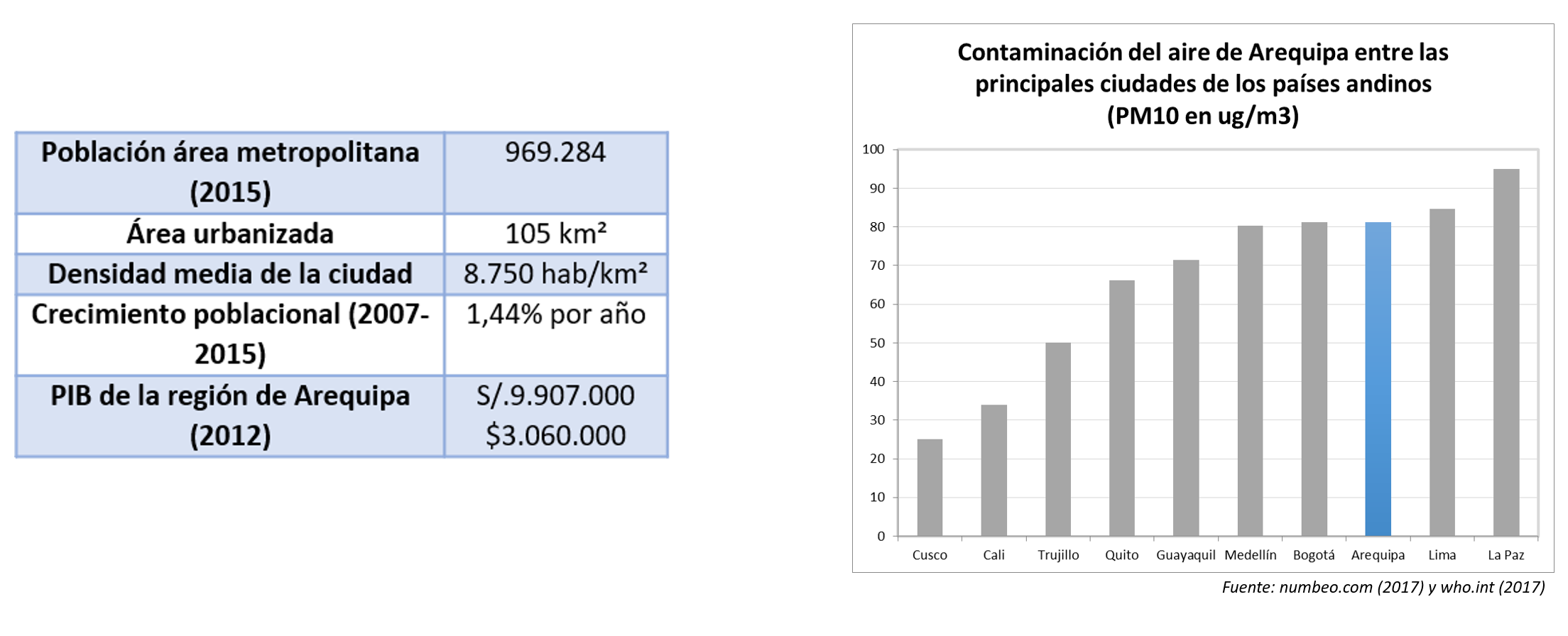 Figura 1: Información poblacional de Arequipa Figura 2: Contaminación del aire en Arequipa
