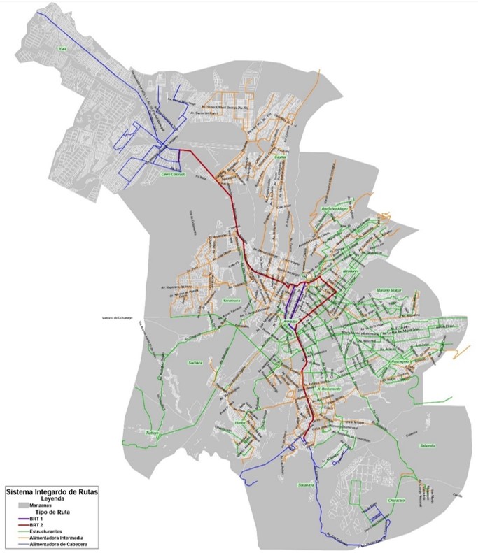Figura 6: Mapa del proyecto de SIT de Arequipa (Fuente: Estudio de factibilidad del SIT, CAF-CTSS)