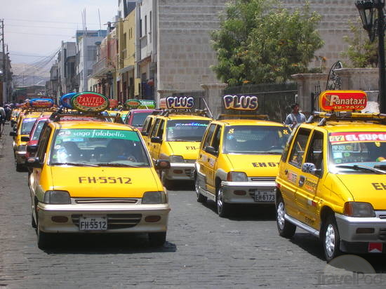 En Arequipa, el taxi representa el tercer modo de desplazamiento más usado (con el 9% de los viajes) y el segundo más usado en la repartición modal del transporte público (con el 11% de los viajes). El taxi constituye una opción para la mayoría de los destinos; existe así una sobreoferta al comparar la cantidad de taxis con el número de habitantes. Este fenómeno impacta de manera negativa la ciudad donde las calles están saturadas por vehículos mayormente vacíos en búsqueda de pasajeros y que contaminan ya que muchas unidades antiguas siguen circulando (como los “ticos”).