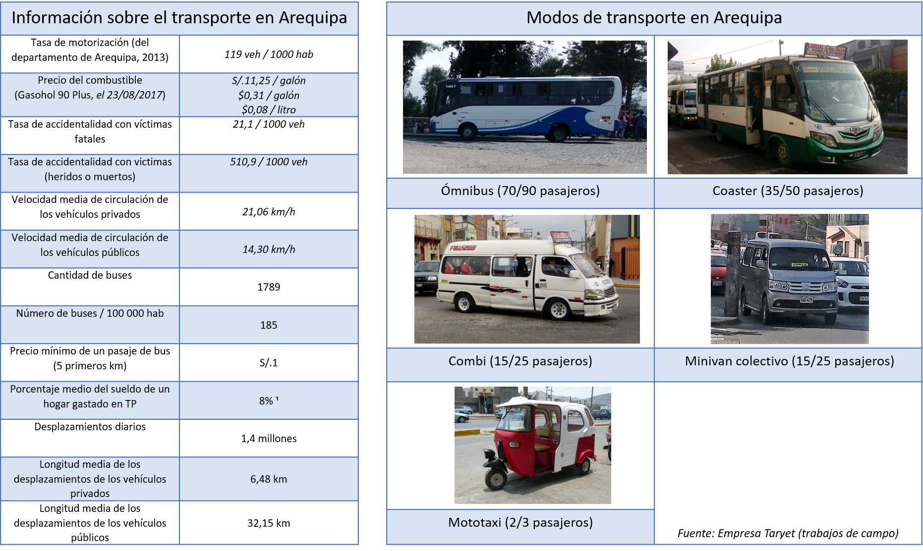 Figura 4: Información sobre el transporte en Arequipa