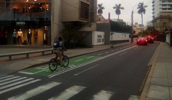 En cuanto al uso de la bicicleta, actualmente, la ciudad de Lima no cuenta con una red continua de ciclovías: son mayormente los distritos centrales que han desarrollado este tipo de infraestructura a veces con un sistema de arriendo de bicicleta, como es el caso de San Borja. El área de Transporte No Motorizado de Lima está implementando el proyecto “Ciclolima” que preve lograr una red de 200 nuevos km de ciclovía en 2018 y quiere trabajar con los 43 distritos de Lima. Finalmente, los sistemas de transporte masivo como el Metropolitano (BRT), y el metro han puesto en sus estaciones, un espacio de estacionamiento para las bicicletas.