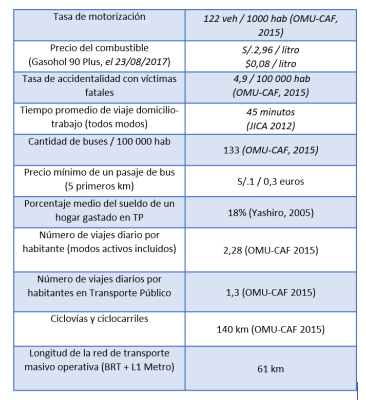 La ciudad se ha extendido hacia los tres “conos” sur, norte y este, desde la planicie de los valles hacia sus laderas. Desplazarse en la ciudad resulta difícil por la congestión de sus ejes viales principales que se dirigen hacia el centro donde se concentran las actividades, pero también por la falta de infraestructuras de transporte masivo. Los habitantes de Lima-Callao consideran que el transporte es el segundo problema que más afecta su calidad de vida tanto a nivel de tiempo de viaje como de contaminación ambiental, de maltrato en el transporte público o de accidente de tránsito.