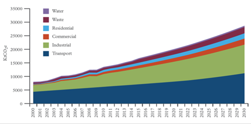 Figura 3: Emisiones por tipos de usos de energía en Lima-Callao (2000-2030), Cooperación británica