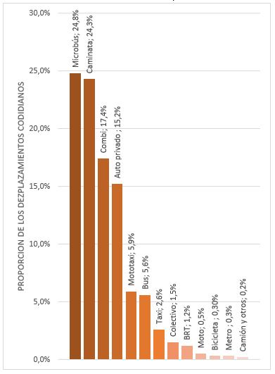 Un tercio de los desplazamientos en Lima se realizan a pie según el siguiente diagrama. Sin embargo, como en muchas ciudades en crecimiento, caminar en Lima es una actividad difícil y peligrosa por la falta de infraestructura adecuada y el comportamiento de los vehículos: los peatones son las primeras víctimas de los accidentes. La MML, a través de su área de Transporte No Motorizado, ha realizado varias intervenciones para promover las movilidades activas como “Al Damero Pizzaro sin carro” que consiste en prohibir el acceso de los vehiculos al centro histórico de Lima el último domingo del mes. A nivel distrital, existen también algunas inciativas similares pero se concentran en los distritos de ingresos altos: en San Isidro, por ejemplo, se realizó la primera zona de bajo tránsito con velocidad limitada a 30 km/h. Hay que subrayar también el papel de la sociedad civil, y de las organizaciones especializadas en temas de transporte urbano que desarrollan varias actividades para sensibilizar y educar sobre las movilidades activas.