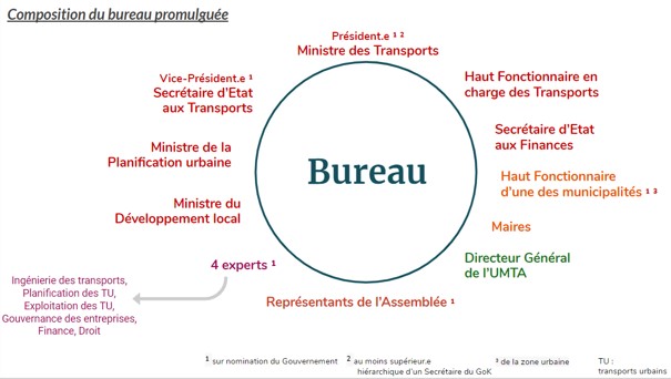 Néanmoins, ce type d’acteurs, les opérateurs ainsi que des représentants d’institutions telles que la Police, l’Agence Nationale des Routes, … pourront être représentés au sein de départements techniques de l’UMTA.