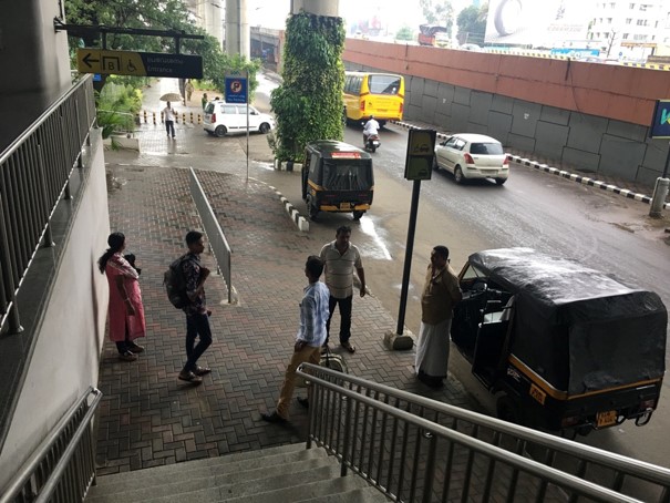 Photo d’un « pick-up point » réservé aux auto-rickshaws à l’entrée d’une station de métro