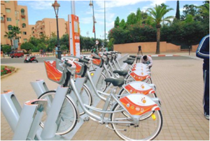 Ainsi, le premier système de vélo en libre service en Afrique du Nord appelé Medina Bike a été mis en place à Marrakech en 2016 à l’occasion de la COP 22. Se devant de promouvoir les mobilités vertes, la ville de Marrakech a voulu se doter d’un système flexible et écologique pour connecter le centre ville au village de la COP 22, ainsi que pour favoriser la mobilité dans le centre ville. Ce projet réalisé en partenariat avec l’Organisation des Nations unies pour le développement industriel et le GEF a été installé en 4 mois seulement avec le déploiement de douze stations pour une flotte de 350 vélos. Ce système destiné aux habitants comme aux touristes est encore très peu utilisé. Des facteurs tels que des tarifs assez élevés (50 MAD pour un ticket à la journée soit environ 5€) et un faible taux de bancarisation limitent le développement de ce système qui doit encore évoluer pour convaincre un plus grand public. Une augmentation de la flotte de vélos ainsi que du réseau de bornes est prévue pour 2018 dans ce sens.