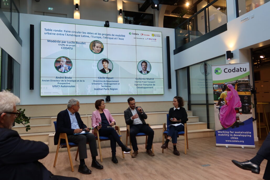 Une table ronde dynamique avec BROTO André, Ancien Directeur de la Stratégie et de la Prospective de VINCI Autoroutes, Cecile Diguet, Directrice du Département Urbanisme, Aménagement et Territoires de L’Institut Paris Region, et Guillermo Madrid, Chef de Projet Transport à l’AFD – Agence Française de Développement.